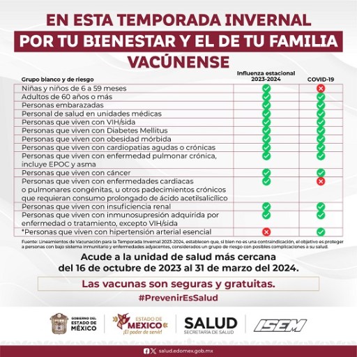 La dependencia estatal precisó que, para la Influenza, la vacuna proporcionada por la Secretaría de Salud federal, a través del Centro Nacional para la Salud de la Infancia y Adolescencia (CENSIA), es el tetravalente, mismo que protege contra las variantes A y B.