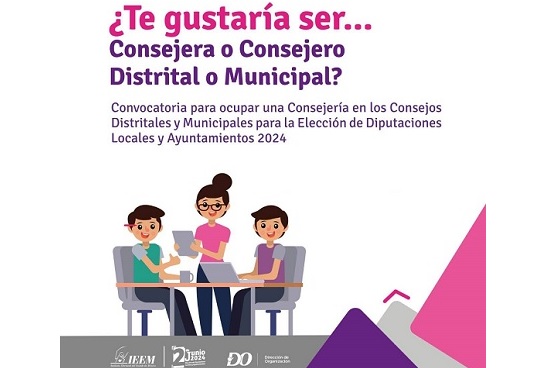 Para fomentar la participación activa de las y los jóvenes en la Elección de Diputaciones y Ayuntamientos 2024, el Instituto Electoral del Estado de México (IEEM) ha difundido los requisitos aprobados por el Consejo General para que la ciudadanía se postule a uno de los 540 espacios disponibles como Consejera o Consejero Distrital, así como para una de los 1,500 espacios como Consejera o Consejero Municipal.