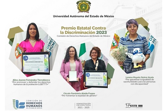 El Círculo Feminista Alaíde Foppa, una colectiva de jóvenes universitarias de la UAEMéx, también ha sido reconocido con el Premio Estatal Contra la Discriminación 2023. Este grupo, compuesto por Claudia Elisa López Miranda, Gabriela Alejandra López Miranda, Dulce Rocío Reyes Gutiérrez, María Guadalupe López Zepeda, Karen Paola Telpalo Lozano, Iliana Espinoza Rivera, Jazmín Anahí Miranda Macedo y Vanessa Munguía Rivero, ha sido galardonado «Por fomentar la equidad de género». El Círculo Feminista Alaíde Foppa se dedica al desarrollo de proyectos académicos y artísticos con una perspectiva feminista, buscando reivindicar los derechos de las mujeres. Su trabajo incansable en la promoción de la igualdad de género es un testimonio inspirador de la importancia de empoderar a las mujeres y luchar por un mundo más igualitario.