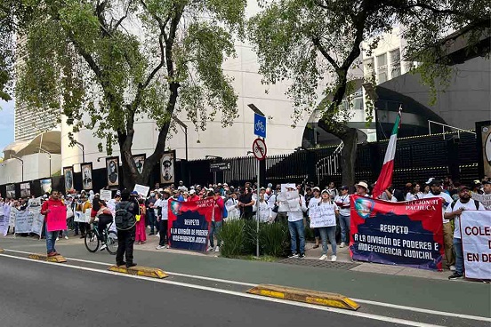 Trabajadores del Poder Judicial de la Federación de varios estados del país, se reunieron la mañana de este martes 24 de octubre de 2023 frente al Senado de la República para exigir a los legisladores que no ratifiquen la desaparición de 13 fideicomisos del ámbito judicial.