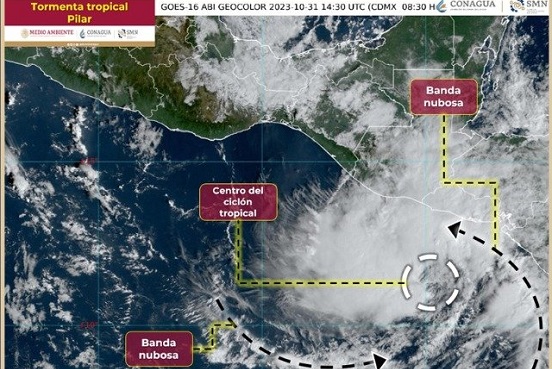 Este martes prevalecerá el pronóstico de lluvias torrenciales en Chiapas, Oaxaca, Tabasco y Veracruz, e intensas en Campeche, debido a la interacción del frente frío número 8 y las bandas nubosas de la tormenta tropical Pilar, informó el Servicio Metereológico Nacional.