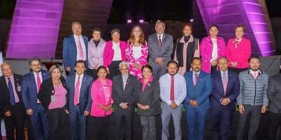 Iluminan de rosa las Torres Bicentenario para crear conciencia de la lucha contra el cáncer de mama que realiza el sector salud