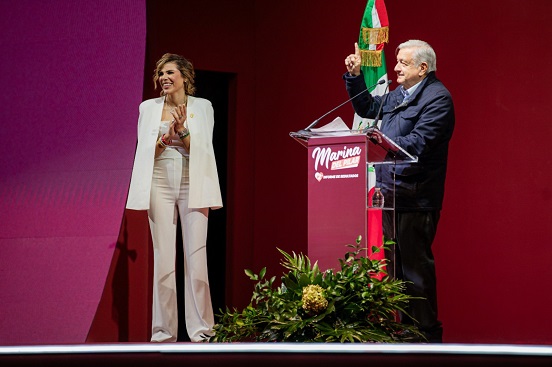 «Hay tres gobernadores presentes, de Puebla, de Nayarit y Tamaulipas y les consta a ellos y a otros más que no acostumbro a acompañarlos en sus informes, esto es una excepción, lo hago por el amor sincero que el tengo al pueblo de Baja California y por la simpatía que tengo con la gobernadora de este gran estado, Marina del Pilar» explicó López Obrador.