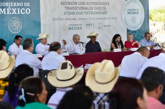 Adicionalmente se comprometió a continuar la restitución de tierras por parte del Gobierno de México como parte del Plan de Justicia del Pueblo Yaqui. Dijo que hay presupuesto suficiente orientado a la compra de hectáreas.