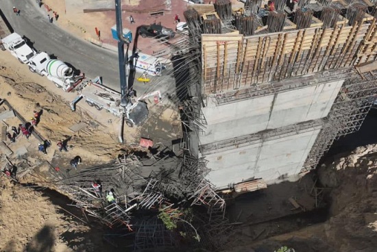 “Al lugar del accidente ha acudido el cuerpo de bomberos para auxiliar a cinco trabajadores, de los cuales dos ya han sido rescatados sin lesiones mayores y se trabaja para liberar a las otras cuatro personas aún atrapadas entre los andamios”.