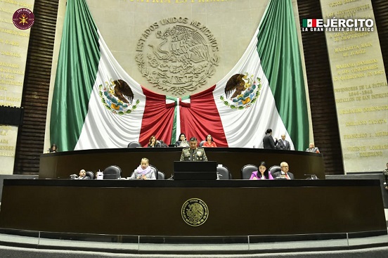 El general secretario aseguró ante el pleno de los diputados que a ésta Cámara y al Ejército “nos vincula un factor común, un elemento de unión que nos motiva a trabajar sin descanso cada día, un punto de encuentro que nos da esperanza para salir adelante, un sentimiento conjunto que nos identifica y por el que damos todo: México”.