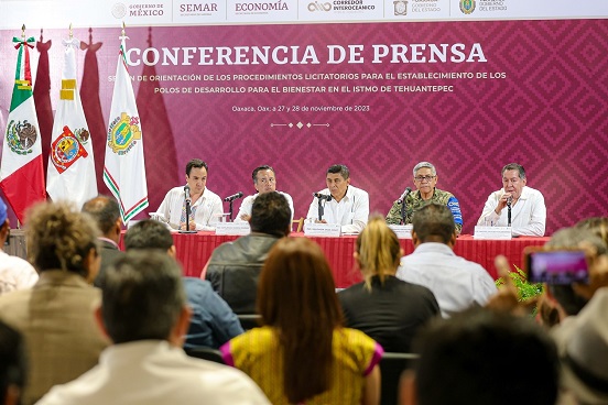 En conferencia de prensa se dio a conocer que el pasado 17 de noviembre se dio el fallo de los primeros Polos de Desarrollo para el Bienestar, cuatro en Veracruz, dos en Coatzacoalcos, uno en Texistepec, uno más en San Juan Evangelista, y otro en Salina Cruz, Oaxaca, de las cuales, tres empresas mexicanas ganaron los proyectos, con lo que se inicia el desarrollo de los Parques Industriales en esa zona.