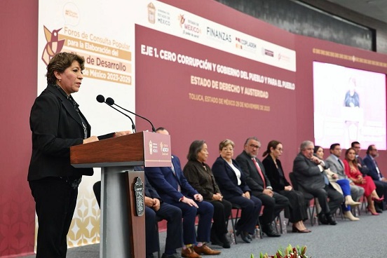 La Maestra Delfina Gómez puntualizó que el Primer Foro, que es coordinado por la Secretaría de la Contraloría, está enfocado al Eje “Cero Corrupción y Gobierno del Pueblo y para el Pueblo”, un tema que por décadas ha lastimado a la sociedad y principal demanda de la ciudadanía en su campaña.