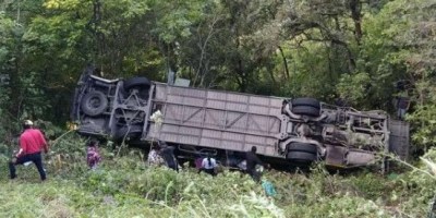 Muere mujer tras volcadura de autobús; hay más de 30 heridos