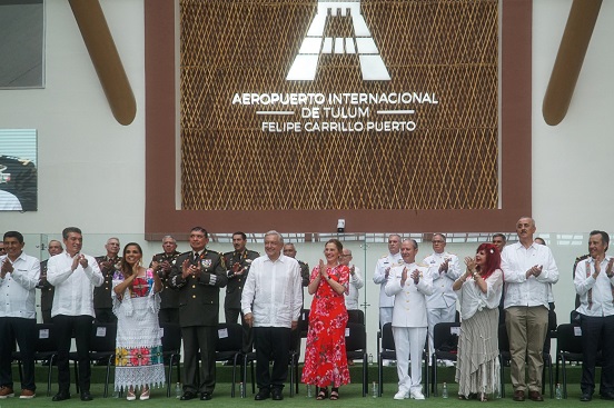 El presidente Andrés Manuel López Obrador inauguró en Tulum, Quintana Roo, el Aeropuerto Internacional Felipe Carrillo Puerto, obra que, recordó, fue realizada con inversión pública, la cual “es fundamental para el desarrollo porque, entre otras cosas, se generan muchos empleos, se distribuye el ingreso y se reactiva pronto la economía”.
