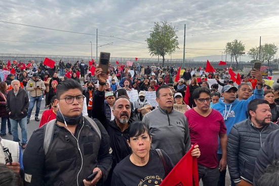 Caminaron por las calles de la colonia hasta salir a la avenida Fuerza Aérea Mexicana en protesta y en demanda de aumento salarial y mejores condiciones de trabajo.