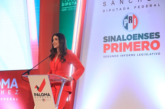 Al presentar su Segundo Informe Legislativo, Paloma Sánchez, diputada federal del PRI, afirmó que, como un estado lleno de mujeres y hombres trabajadores que sostienen a México con su esfuerzo, Sinaloa merece más y, por eso, desde el Congreso de la Unión, ha puesto a las y los sinaloenses primero.