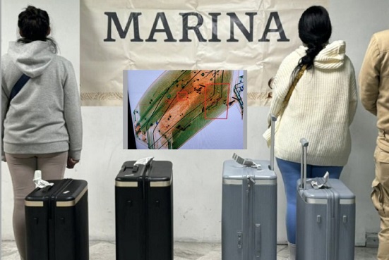 Dos pasajeras mexicanas fueron detenidas hoy 5 de diciembre de 2023 en el Aeropuerto Internacional de la Ciudad de México (AICM) cuando pretendían viajar a Madrid, España, con 25 kilos de metanfetamina en sus maletas.