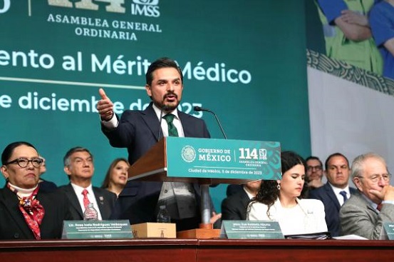 “Mi brújula lo marcó claro: la ruta correcta, no la obvia ni la sencilla, es consolidar el nuevo sistema de salud que merece el pueblo de México y hacerlo desde la institución más noble de esta patria. El Instituto Mexicano del Seguro Social”, expresó el director general, Zoé Robledo, en el marco de la 114 Asamblea General Ordinaria del Instituto.