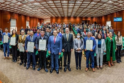 En una destacada ceremonia en la Sala de Consejo Universitario «Lic. Benito Juárez García», el rector de la Universidad Autónoma del Estado de México (UAEMéx), Carlos Eduardo Barrera Díaz, lideró la entrega de reconocimientos de Títulos de Protección Industrial 2023 a nueve inventoras y 14 inventores investigadores de la institución. Este evento resalta la calidad académica, originalidad e innovación de estos talentosos individuos que han contribuido significativamente al avance científico y tecnológico.