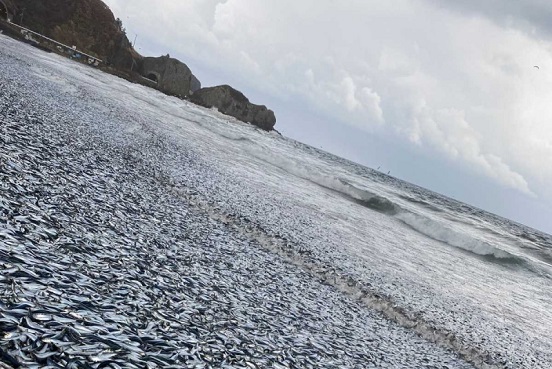 Alrededor de las 8:00 de la mañana, un residente local alertó a la policía sobre la gran cantidad de peces que llegaban a la playa, y la información fue comunicada a las autoridades locales. Hacia el mediodía del mismo día, una extensa cantidad de sardinas y otros peces aparecieron en la playa de arena, abarcando un área de aproximadamente un kilómetro.
