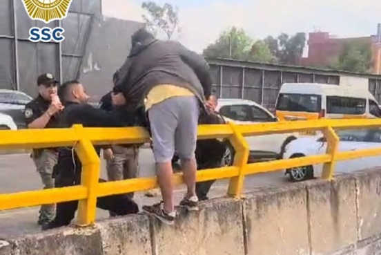 Policías de la Ciudad de México (CDMX) salvaron a un hombre que intentaba suicidarse al arrojarse de un puente en Circuito Interior y Peñón, en la alcaldía Venustiano Carranza.