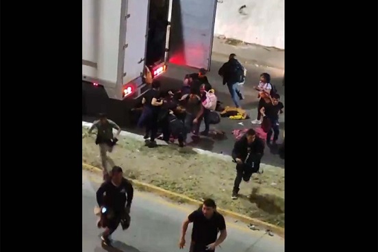 Alrededor de las 22:00 horas, a través de redes sociales, se difundió la imagen del descenso atropellado de las personas migrantes en las que observa correr a jóvenes y adultos, mientras sus pertenencias quedaron esparcidas sobre el pavimento.