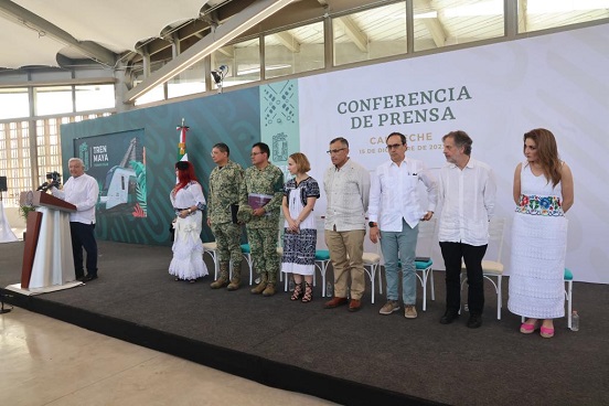 “Cumpliendo la instrucción del señor presidente y comandante supremo de las Fuerzas Armadas, la Secretaría de la Defensa Nacional designó recursos humanos y materiales para llevar a cabo la administración, la operación y mantenimiento de esta gran obra conformando todo un equipo de mujeres y hombres profesionales y capacitados. Mujeres y hombres militares y también civiles que conforman esta gran empresa que va a tener bajo su responsabilidad esta operación del Tren Maya”, argumentó.