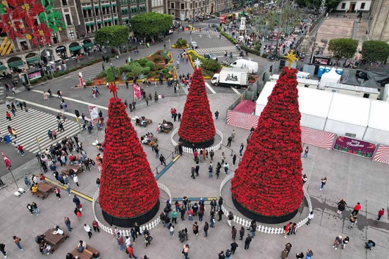 Además de los mega árboles de Navidad, en el Zócalo se instaló una Aldea Navideña, con un espacio para la presentación de las tradicionales pastorelas; cabañas con juegos de destreza, luce cinéticas y muchas actividades recreativas” detalló por su parte la secretaria de Cultura local.