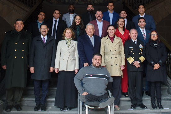 El presidente Andrés Manuel López Obrador se reunió en Palacio Nacional con las y los deportistas participantes en los Juegos Parapanamericanos y Panamericanos 2023, así como sus entrenadores, a quienes entregó estímulos económicos.