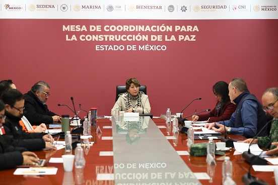 TOLUCA, Estado de México.- Al encabezar la Mesa de Coordinación de Coordinación para la Construcción de la Paz, la Gobernadora del Estado de México, Delfina Gómez Álvarez fue informada de los avances en materia de seguridad durante este 2023.