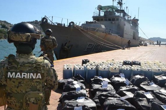 En el entorno marítimo durante 2023, personal naval con el apoyo de buques y aeronaves de la Armada de México, logró el aseguramiento de 48.147 toneladas de cocaína en la mar y a través de operaciones portuarias y aeroportuarias, lo que representa el 85.3 % del total asegurado con relación a las 56.41 toneladas contabilizadas de los últimos cuatro años, del 2019 al 2022; en su mayoría dicho estupefaciente era transportado a bordo de 155 embarcaciones menores, entre ellas, tres tipo semisumergibles.