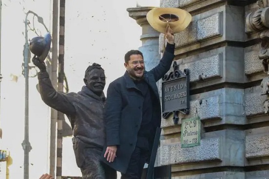 El jefe de Gobierno, Martí Batres, encabezó la develación de la estatua de bronce creada por el escultor Eduardo Bautista y que está ubicada en el cruce de Madero e Isabel La Católica.