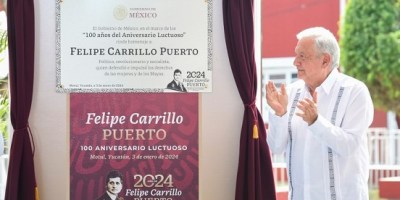 AMLO homenajea a Felipe Carrillo Puerto en Yucatán; destaca acciones del dirigente social a favor de los mayas