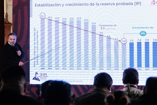 El funcionario sostuvo en el Salón de la Tesorería de Palacio Nacional, que en el actual gobierno se ha detenido la caída de las reservas de Pemex, pues las ha aumentado en un seis por ciento en los cinco años que lleva.