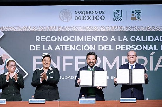 El director general del Instituto Mexicano del Seguro Social (IMSS), Zoé Robledo, y el secretario general del Sindicato Nacional de Trabajadores del Seguro Social (SNTSS), doctor Arturo Olivares Cerda, firmaron la Carta de Entendimiento de los Trabajos de Comisión Bilateral para el Reconocimiento de la Licenciatura de Enfermería, con ello se crearán las categorías de Enfermera General Clínica para el Régimen Ordinario y el Programa IMSS-Bienestar.