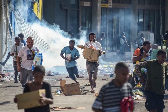 Otras imágenes mostraron edificios y automóviles incendiados, con espesas columnas de humo sobre partes de la capital. La embajada de Estados Unidos en Port Moresby indicó que se produjeron disparos cerca de sus instalaciones cuando la policía intentaba «dispersar grupos de saqueadores». Beijing presentó una queja formal porque en los disturbios, según su diplomacia, varios comercios chinos resultaron dañados y dos de sus ciudadanos sufrieron «heridas leves».