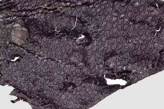 La piel se encuentra excepcionalmente bien conservada, y aunque se trata de una pequeña muestra, más pequeña que una uña y tan fino como una hoja de papel, constituye la epidermis conservada de la criatura.