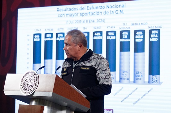 Destacó, además, la aportación de la Guardia Nacional en aduanas, puertos, aeropuertos, decomisos de drogas, etcétera.