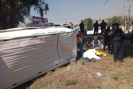 Dieciséis personas resultaron lesionadas al volcarse una combi del servicio público de pasajeros sobre la autopista México Pachuca a la altura del Puente del Vigilante.