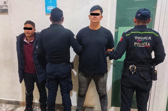 Toluca, Estado de México.- Dentro del operativo permanente en la delegación Felipe Chávez Becerril, la Dirección General de Seguridad y Protección de Toluca logró la detención de dos individuos sospechosos por su presunta participación en el delito de extorsión.