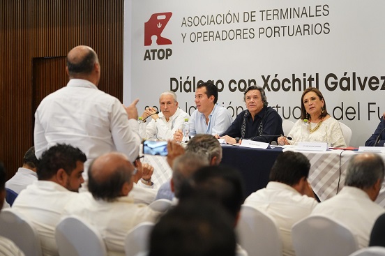 Xóchitl Gálvez Ruiz encabezó en el Puerto de Veracruz una reunión con integrantes de la Asociación de Terminales y Operadores Portuarios (ATOP), quienes le expresaron su preocupación por la inseguridad y la falta de modernización en instalaciones portuarias y aduanas del país.