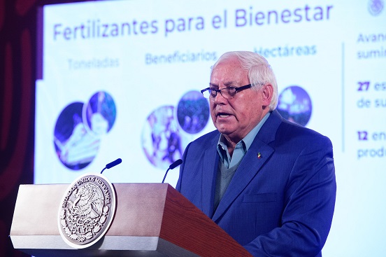 En este contexto, el titular de la Secretaría de Agricultura y Desarrollo Rural (Sader), Víctor Manuel Villalobos Arámbula, en su intervención en Palacio Nacional también destacó que el programa de “Fertilizantes para el Bienestar” tiene un avance de suministro del 27 por ciento en lo que va del año. Además se confirmó que 27 estados están en proceso de suministro y 12 en entregas a productor.