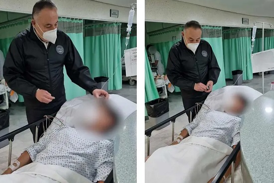 El fiscal General de Justicia del Estado de México, José Luis Cervantes Martínez acudió al hospital donde fue internado el escolta que resultó herido cuando viajaban en un convoy que circulaba por la autopista México-Toluca.