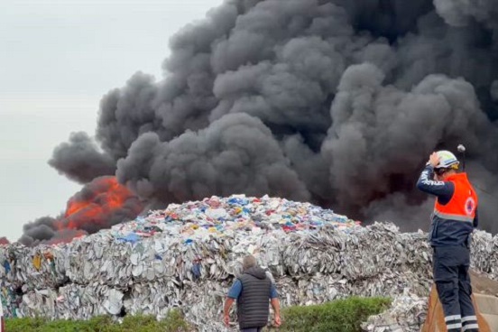 Bomberos de la CDMX y de varios municipios del Estado de México han arribado para combatir las llamas que emanan de los montículos de PET, papel y otros plásticos.