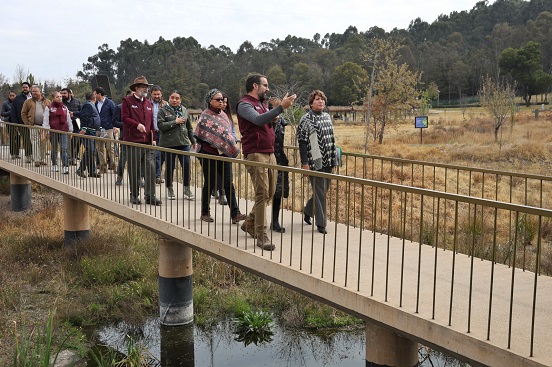 Acompañada por integrantes del Gabinete estatal y de los Presidentes Municipales de Toluca, Metepec y Zinacantepec, la Maestra Delfina Gómez recorrió el Pabellón Hidro-Botánico y Planta de Tratamiento de Agua, meandros y humedales de tratamiento y conservación con los que cuenta el Parque Sierra Morelos.