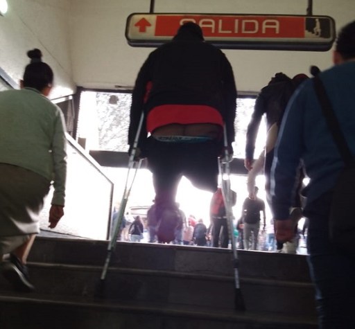 La semana pasada salí de uno de los vagones en la estación Mixcoac. Venía de Barranca del Muerto. Delante de mí subía pesadamente las escaleras fijas un hombre con muletas, a quien le faltaba la pierna derecha. Las escaleras eléctricas no estaban funcionando y la persona subió con dificultad uno a uno los peldaños hacia la salida.