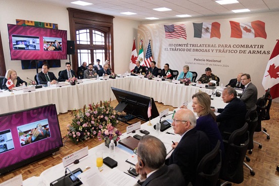 Al dar la bienvenida a las delegaciones de Canadá y Estados Unidos, la secretaria de Seguridad y Protección Ciudadana, Rosa Icela Rodríguez reiteró el compromiso de México de seguir coadyuvando en el combate del tráfico de drogas sintéticas, en especial del fentanilo, pero también en la necesidad de reforzar de manera conjunta el combate al tráfico de armas de alto poder que llegan a México y que provocan violencia.