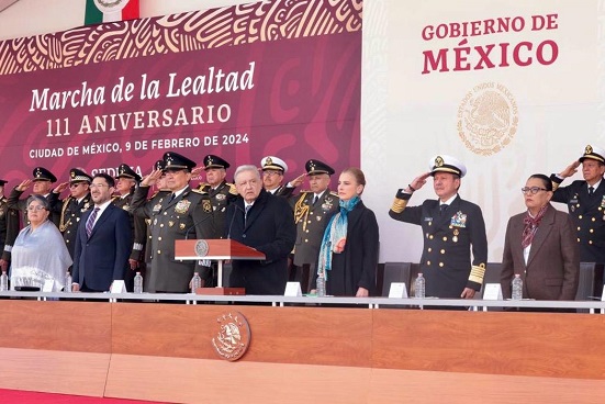 Portando «el estandarte de la lealtad institucional como guía y filosofía de vida, seguiremos cumpliendo el mandato constitucional con el compromiso y la responsabilidad que implica servir a la patria», afirmó el general Luis. Cresencio Sandoval, titular de la Secretaría de la Defensa Nacional (Sedena), durante la ceremonia conmemorativa del 111 aniversario de la Marcha de la Lealtad.