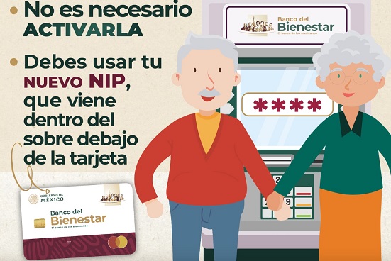 Explicó que cuando hagan uso de sus recursos únicamente deben utilizar el NIP que viene en el sobre con la tarjeta.