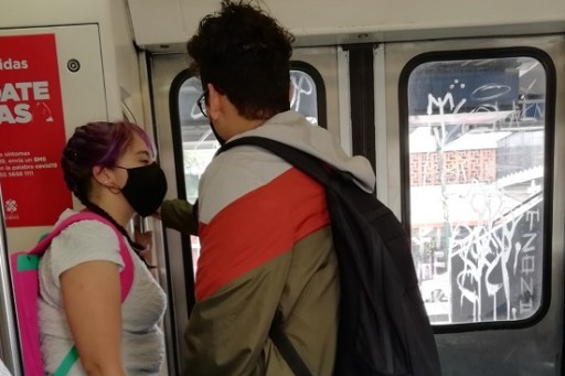 En Garibaldi – Lagunilla me tocó observar el año pasado a un par de hombres jóvenes que estaba muy cariñoso platicando en una de las salidas de la estación y otra vez en Centro Médico, en plena pandemia, una pareja heterosexual se besaba frecuentemente sin cubrebocas. Riendo le pregunté al chavo ¿Y el cubrebocas? Y me respondió de inmediato con otra sonrisa: ahorita me lo pongo cuando termine de besarla.