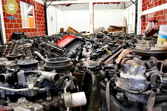 Los policías ubicaron el inmueble que, al parecer, servía como centro de almacenaje y distribución de autopartes posiblemente robadas, donde también se hallaron diversos motores alterados en sus medios de identificación, e ingresaron, junto con personal de la FGJ, sin uso de violencia