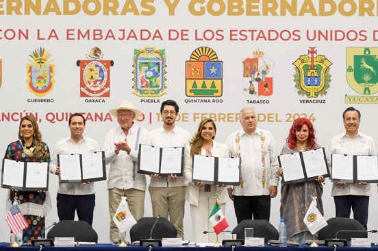 Gobernadores del Sur-Sureste de México firmaron un memorándum de entendimiento con la embajada de los Estados Unidos para seguir impulsando acciones en favor de la migración ordenada, la seguridad, la educación y el apoyo a la economía de las comunidades rurales.
