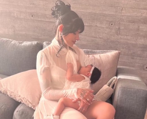 En la segunda foto se puede ver a la rapera argentina más arreglada luciendo a la perfección un vestido blanco mientras amamanta a su bebé, quien también usa un atuendo color blanco y ambas lucen sumamente hermosas.