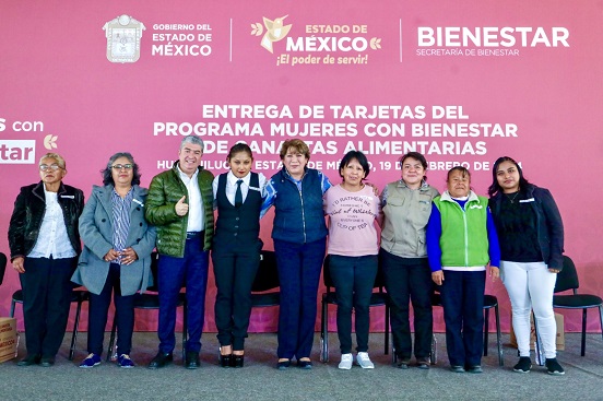 La Maestra Delfina Gómez destacó que las tarjetas de este programa tienen acceso a una red de servicios que representan un apoyo directo y transparente, sin intermediarios, acción que tiene como finalidad retribuir lo que las mujeres brindan a la sociedad, como un acto de justicia.